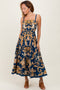 Brown Floral Square Neck Long Sleeve Maxi Dress