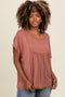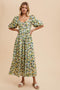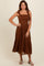 Brown Lace Shoulder Tie Ruffle Hem Midi Dress