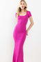 A ribbed knit sleeveless midi dress featuring a side slit and a square neckline.