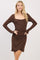 Brown Ribbed Long Sleeve Ruched Tulip Skirt Dress