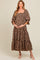 Brown Smocked Tiered Pocketed Maternity Midi Dress