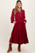 Burgundy Cotton Gauze Long Sleeve Tiered Maternity Midi Dress