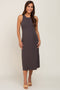 A rib knit maternity sweater dress with a turtleneck and long sleeves.