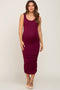 Details A soft knit midi dress featuring ruching on the sides and back, a scoop neckline and a v-back. Content + Care