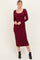 Burgundy Scoop Neck Long Sleeve Midi Dress