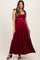 Burgundy Velvet Smocked Satin Shoulder Tie Maternity Maxi Dress