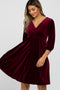 Burgundy Velvet Wrap Front Babydoll Maternity Dress