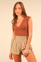 Camel Crochet Knit Scallop Detail Open Cardigan