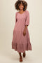 Camel Deep V-Neck Textured Satin Maternity Maxi Dress