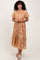 Camel Floral Print Ruffle Hem Midi Dress