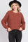A knit pullover sweater featuring long puff sleeves and a rounded neckline.