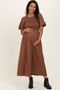 Camel Ribbed Wait Tie Maternity Midi Dress