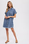A faded wash pair of maternity drawstring shorts with two side pockets.