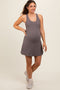 Charcoal Rib Knit Back Slit Dress