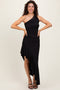 Charcoal Ribbed Fitted Side Slit Midi Dress