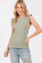 Charcoal Ribbed Ruffle Shoulder Tank Top