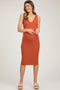 A solid maternity pencil skirt in a midi length with ruching on the sides, an elastic waistband and a wrap hem.