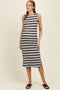 Charcoal Striped Short Sleeve V-Neck Midi Dress
