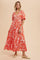 Coral Red Resort Print Puff Sleeve Maxi Dress