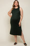 A cable knit maternity dress featuring a mock neckline and no sleeves.
