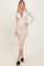Cream Contrast Trim Ribbed Knit Button Up Midi Dress