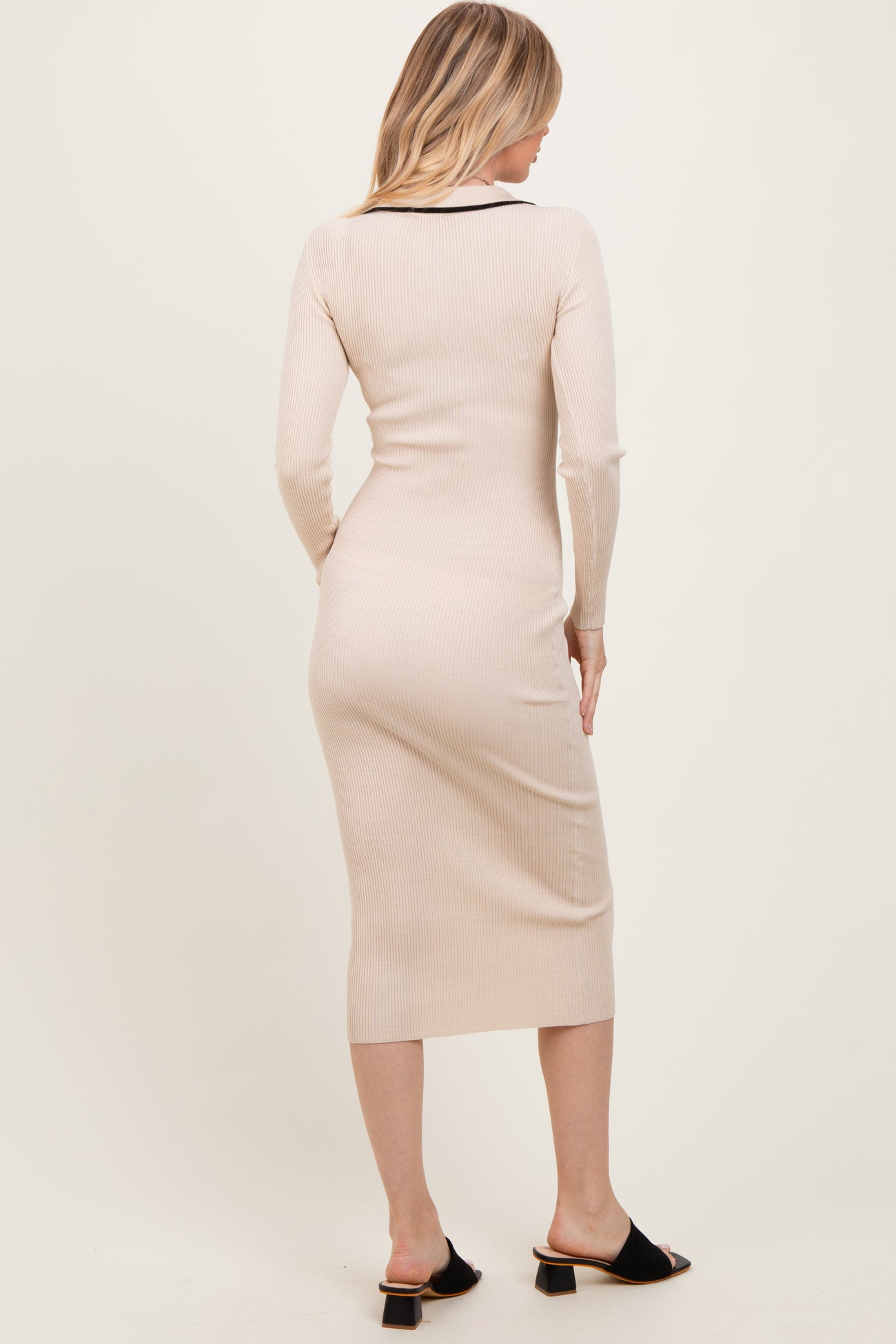Elevate your wardrobe with this Cream Contrast Trim Ribbed Knit Button Up Midi Dress. Crafted from a soft, stretchy ribbed knit, this dress hugs your silhouette for a flattering fit. The elegant midi length pairs perfectly with heels or boots, making it ideal for both day and night looks. Featuring a chic collar and button-up front with striking black contrast trim, it adds a touch of sophistication and modern flair. Long sleeves provide warmth while maintaining style. Effortlessly versatile, this dress is perfect for brunch, work, or evening outings. Embrace cozy elegance in every season!