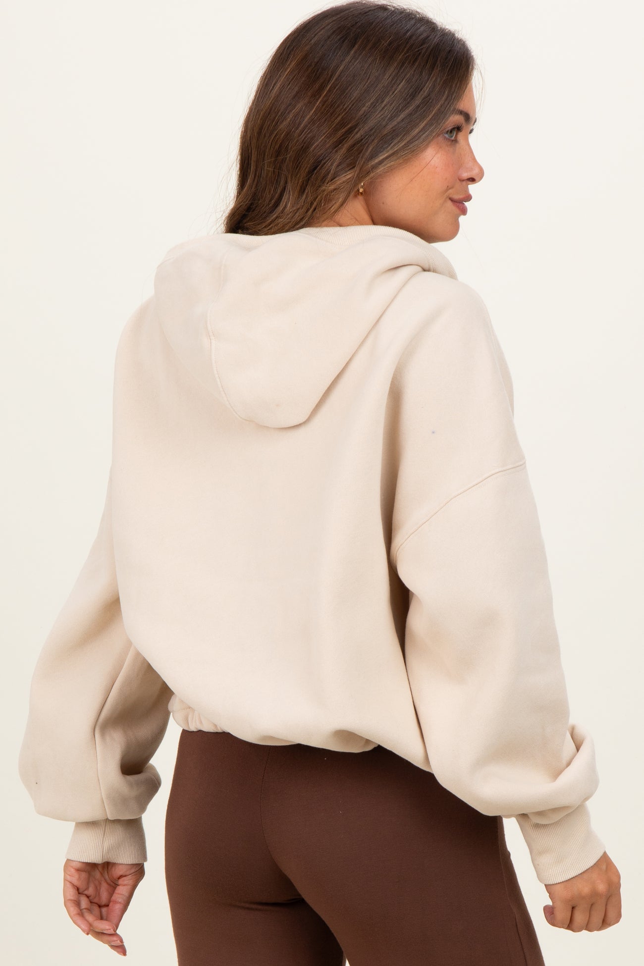 Cream Fleece Half Zip Drop Shoulder Maternity Hoodie