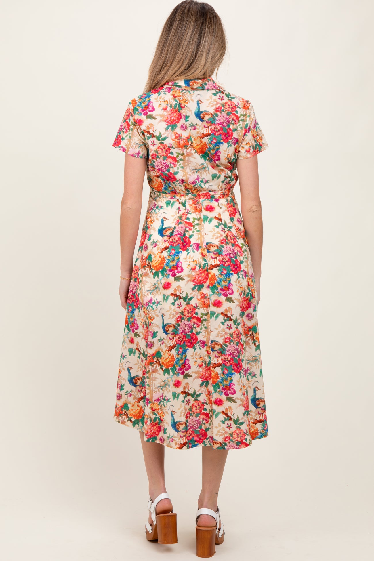 Cream Floral Button Down Maternity Midi Shirt Dress