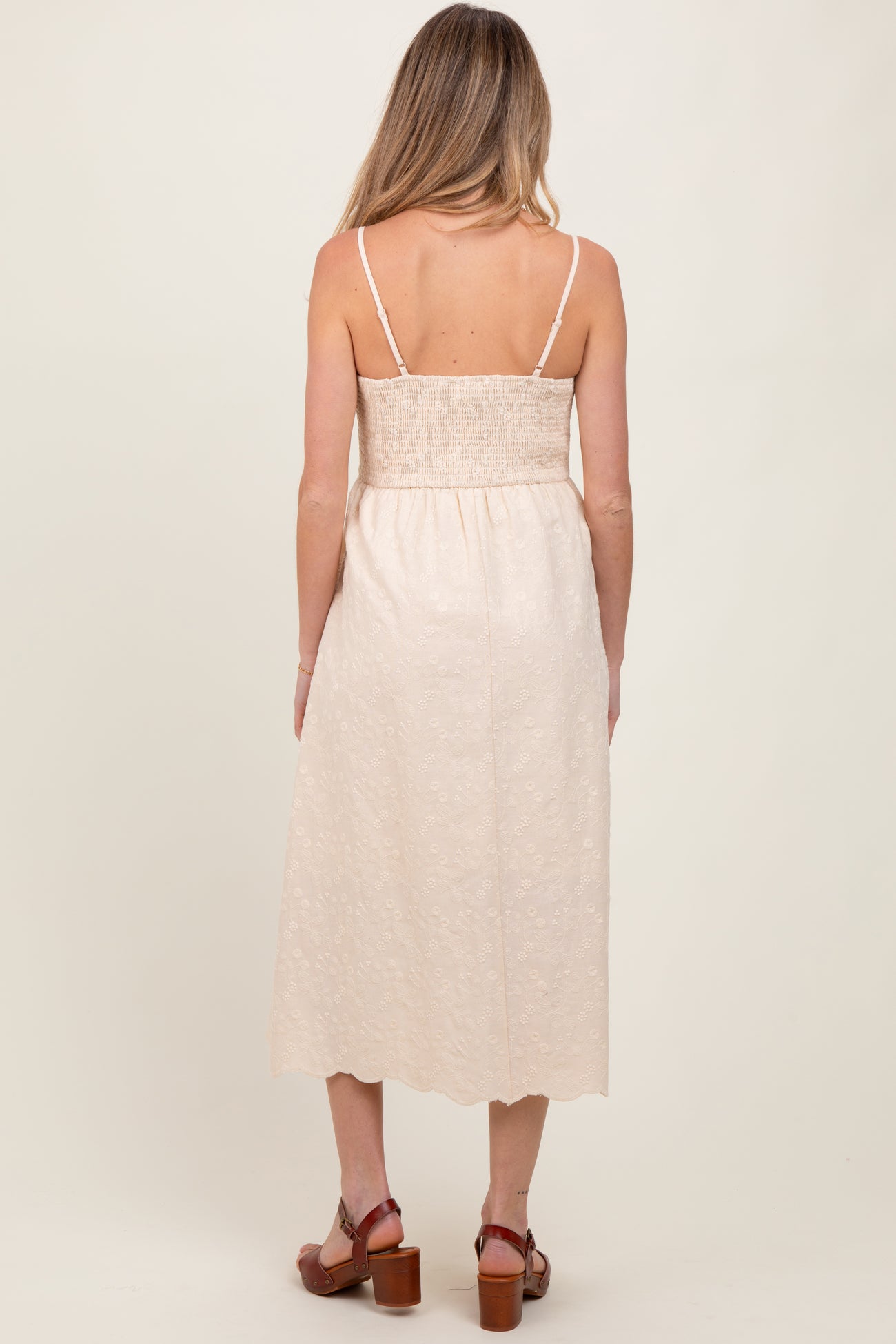 Cream Floral Embroidered Scallop Detail Maternity Midi Dress