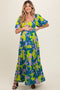 Cream Floral Puff Sleeve Maternity Midi Dress