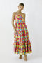 Cream Floral Ruffle Square Neck Smocked Waist Maxi Dress