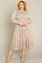 Cream Floral Smocked 3/4 Sleeve Maternity Plus Midi Dress
