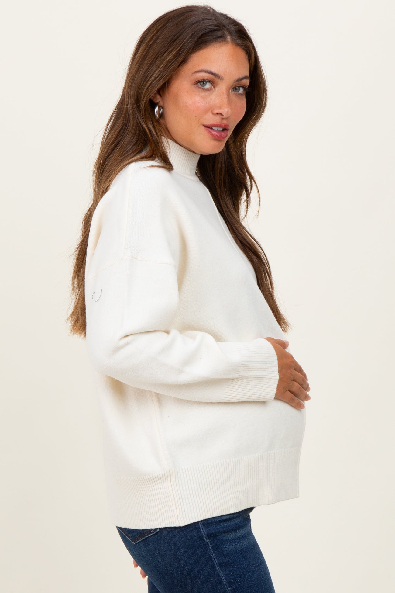 Cream Front Seam Mock Neck Maternity Sweater