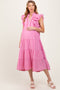 Elevate your maternity style with our Smocked Flutter Sleeve Midi Dress. Designed for comfort and elegance, this dress features lightweight, breathable fabric and a flattering smocked bodice that adapts beautifully to your growing bump. The delicate flutter sleeves add a feminine touch, while the flowy midi skirt drapes gracefully for easy movement and all-day wear. Perfect for special occasions or everyday chic, this versatile dress pairs effortlessly with sandals or heels. Stay stylish and feel your best throughout your pregnancy and beyond in this must-have midi dress!