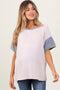 Cream Solid Ribbed Color Block Short Sleeve Maternity Tunic Top