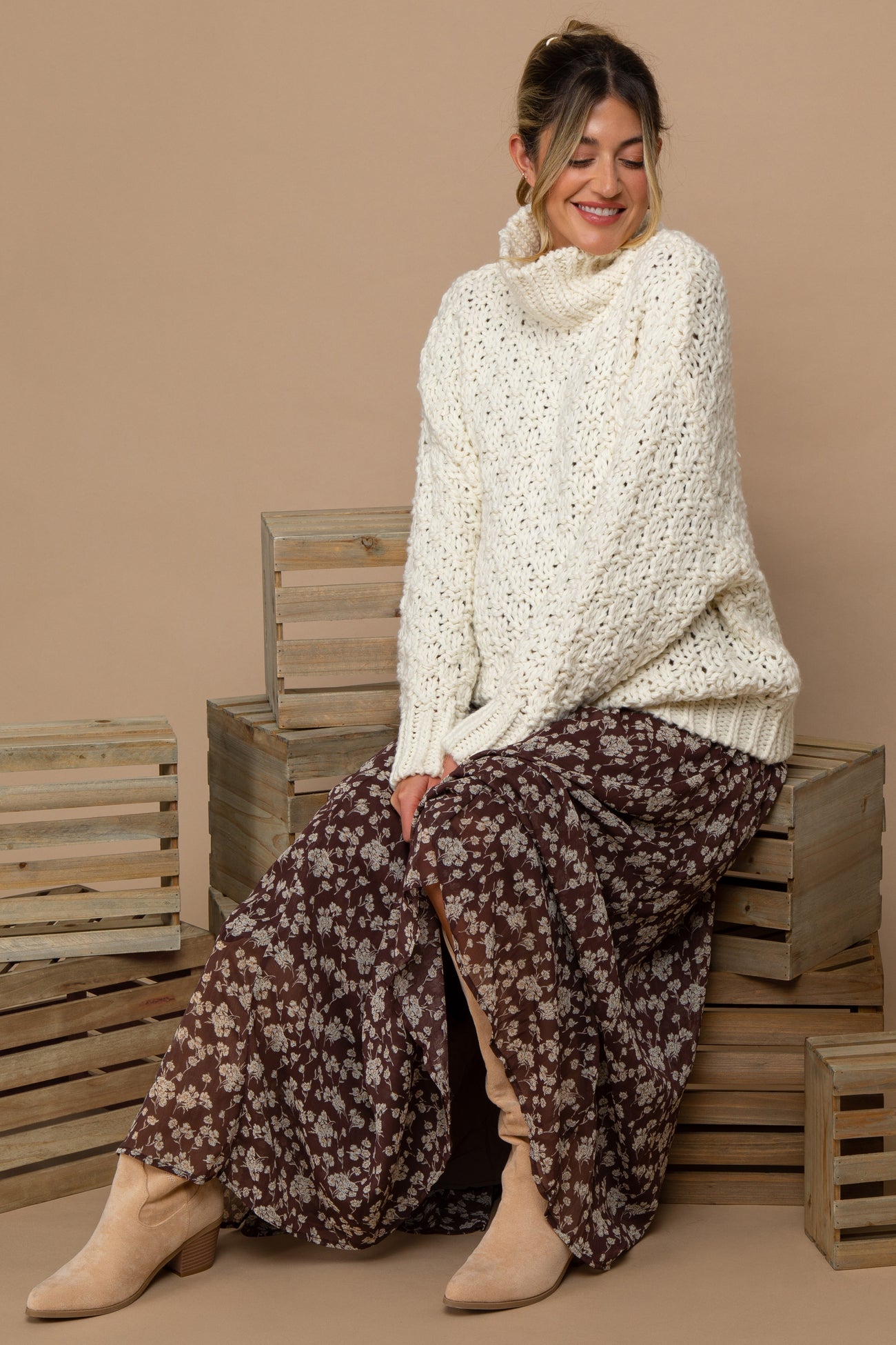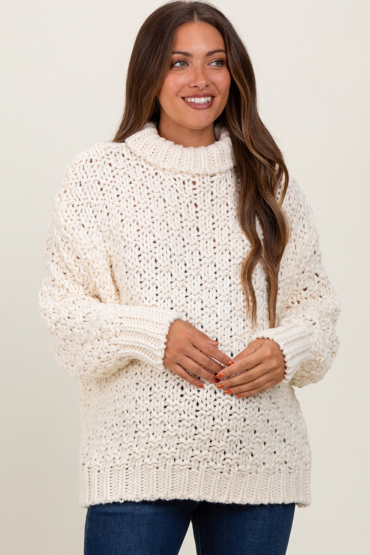 Cream Turtle Neck Chunky Crochet Knit Maternity Sweater