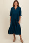 Dark Teal Collared Button Up Tiered Maternity Midi Dress