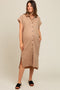 Deep Red Front Pocket Line Textured Short Sleeve Maternity Dress