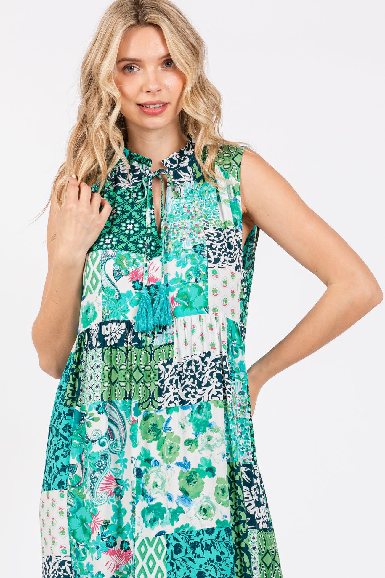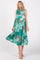 Emerald Green Floral Paisley Tassel Tie Ruffle Hem Midi Dress
