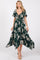 Forest Green Floral Knot Front Short Sleeve Asymmetrical Hem Maxi Dress