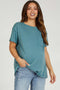 A floral printed knit maternity midi dress featuring a wrap front v-neckline, short sleeves, an adjustable tie at the waist and a hi-low hem.
