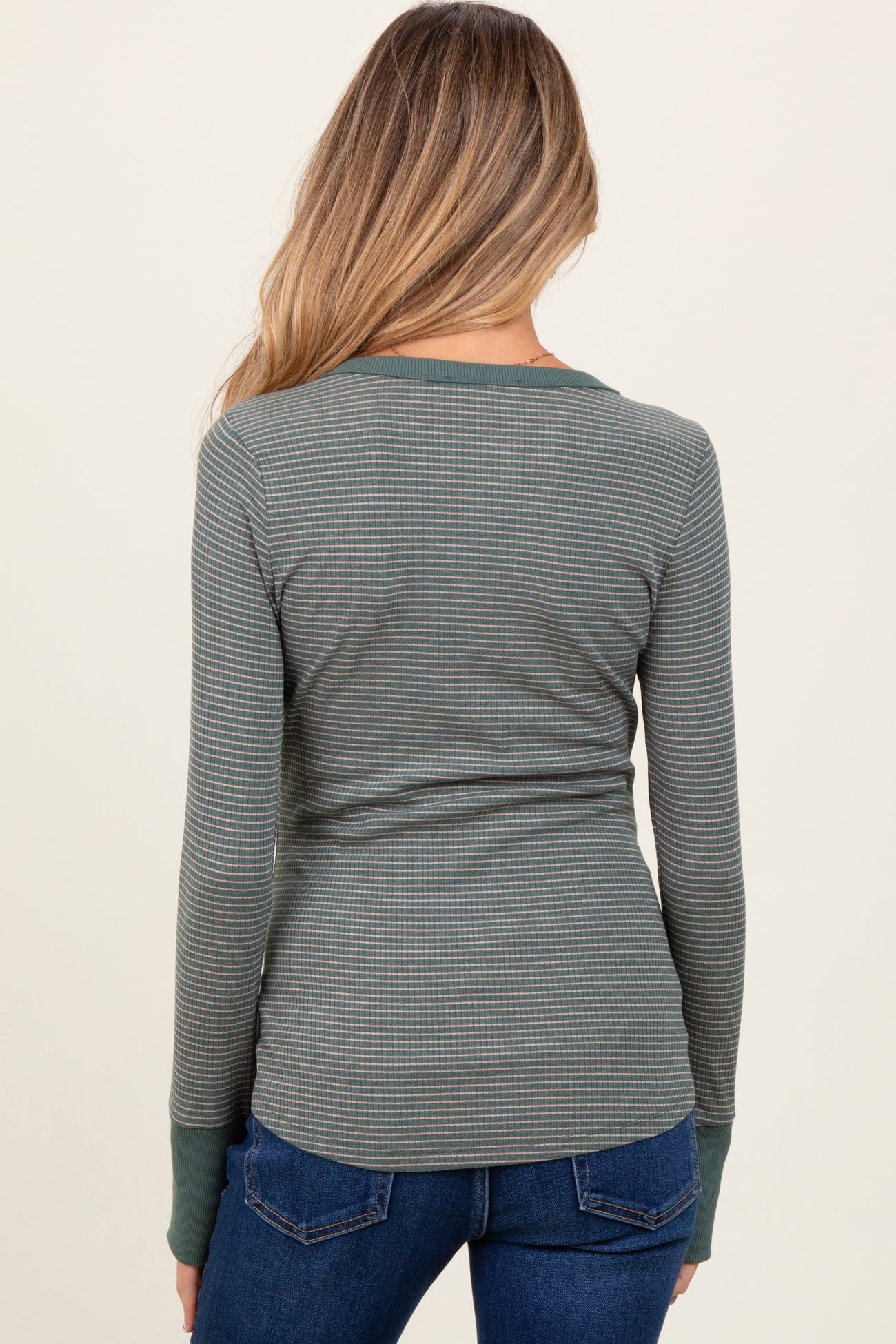 Stay cozy and stylish throughout your pregnancy with this striped snap button Henley maternity top. Crafted from soft, breathable fabric, it offers all-day comfort and flexibility to accommodate your growing bump. The long sleeves with thumb holes provide extra warmth and a trendy touch, while the snap button placket allows easy nursing access for post-pregnancy wear. Designed with a flattering fit, this versatile top pairs perfectly with jeans or leggings for casual outings or lounging at home. A must-have addition to your maternity wardrobe that blends practicality with timeless style.