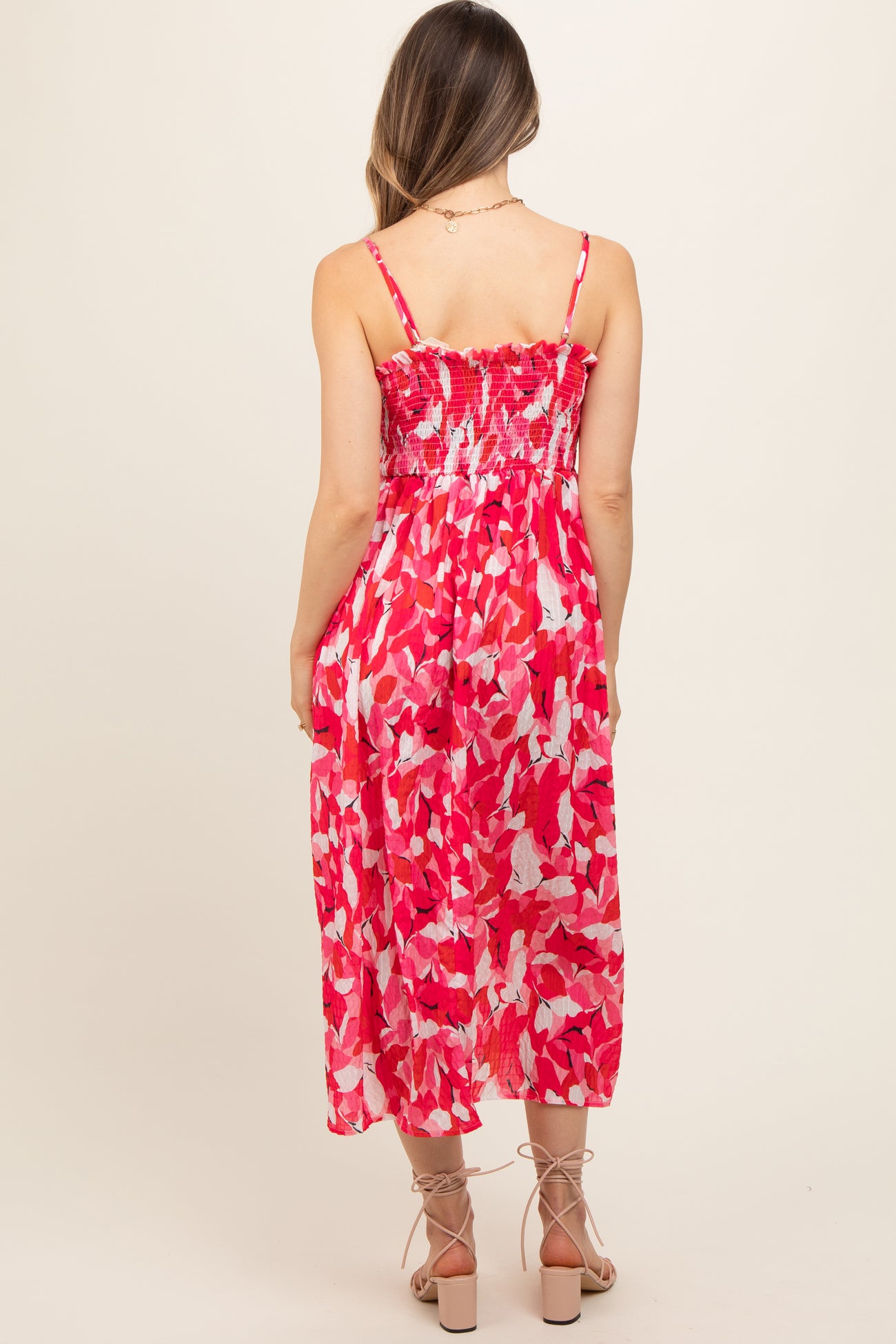 Fuchsia Abstract Floral Smocked Maternity Midi Dress