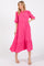 Fuchsia Balloon Sleeve Split Neck Midi Dress