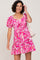 A floral print dress featuring a short puff sleeves, a tiered skirt and side pockets.