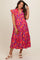 Fuchsia Layered Ruffle Shoulder Tiered Maternity Midi Dress
