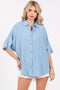 Fuchsia Linen Dolman Half Sleeve Button Down Top