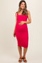 Fuchsia Mesh Ruched Bodycon Midi Dress
