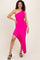 Fuchsia One Shoulder Asymmetrical Ruffle Dress