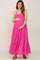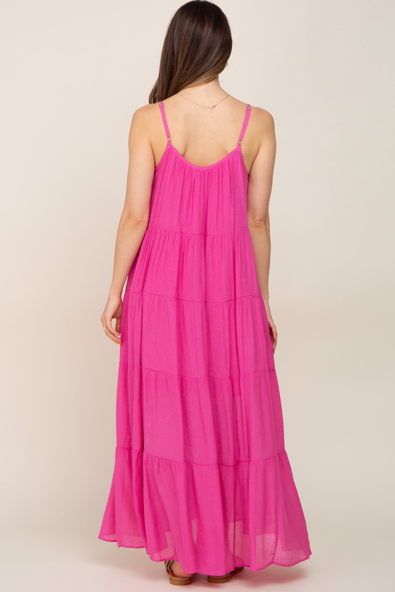 A solid tiered maternity maxi dress with adjustable straps. Dress is double lined. Pocketed.